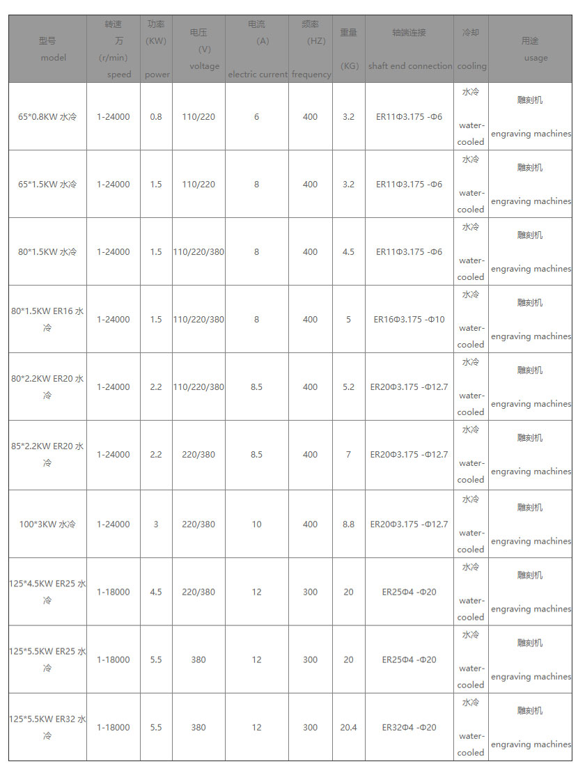 وصف المنتج: سبيندل تبريد مائي سبيندل تبريد هوائي لآلات CNC